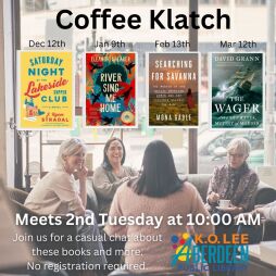 o Coffee Klatch: A book club for adults, 18+ years. Meets the 2nd Tuesday of every month at the Public Library at 10:00 AM.