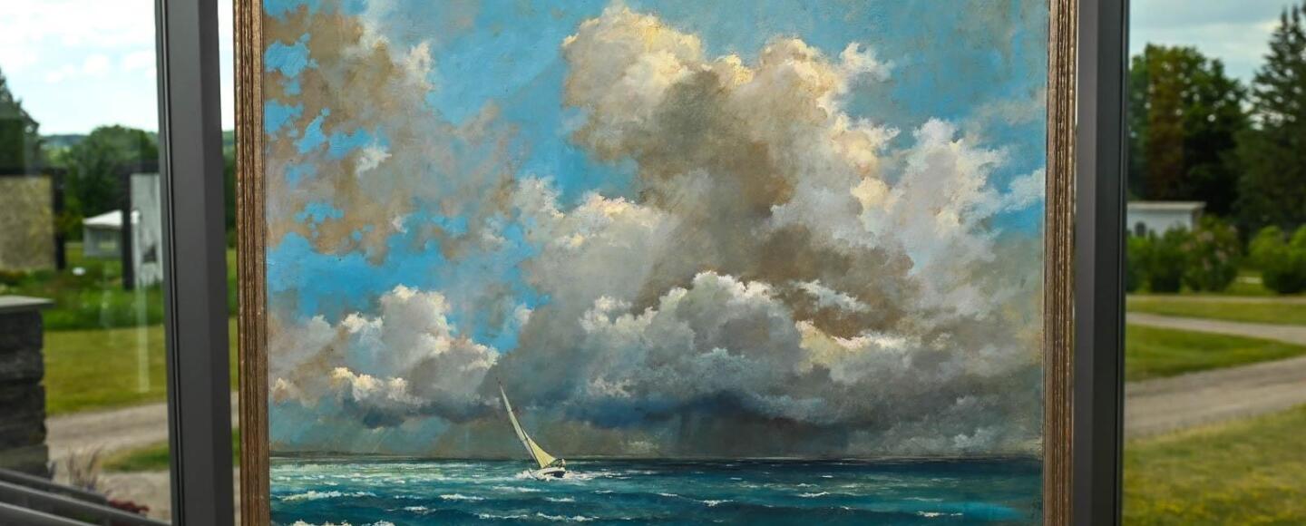 In Shelburne Museum, Hour 3, David Weiss appraises an Eric Sloane Sea and Sky — Squall line oil from 1950.